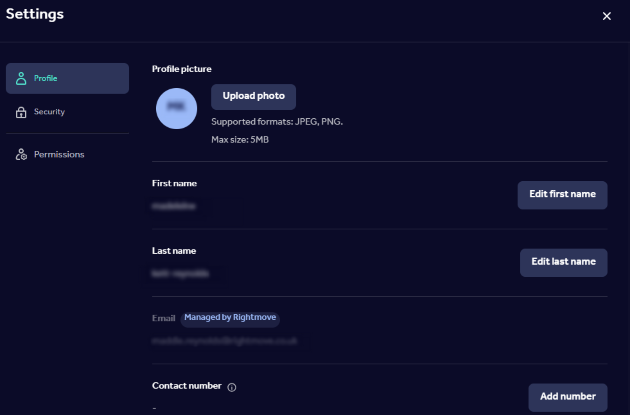 Under the 'profile' tab, you can update details such as your profile pic, first and last name, job title and focus area (sales/lettings).