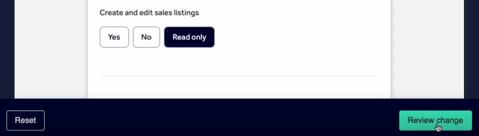 2. Once you've selected the necessary permissions, click 'review change' at the bottom: