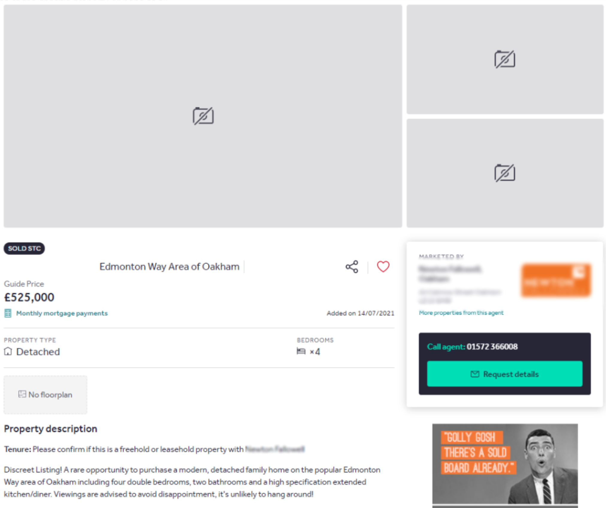 Below is a screenshot of an example of a discreet/'coming soon' listing we would allow on site: