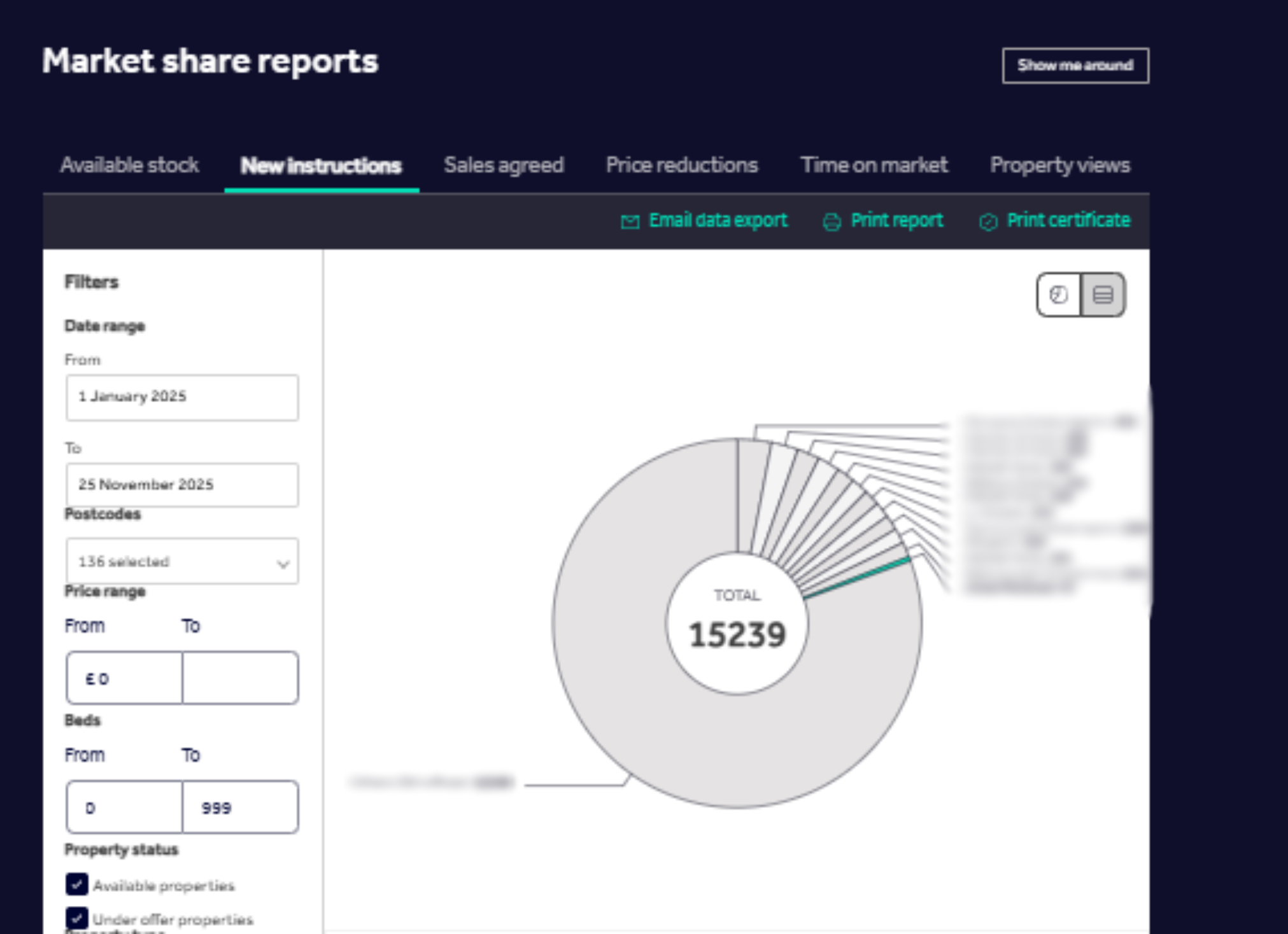 The Market Share Reports are a handy tool that are available in Rightmove Plus, and can be used by partners to help measure success, and to monitor property market trends. These reports are only available to EA Partners currently.